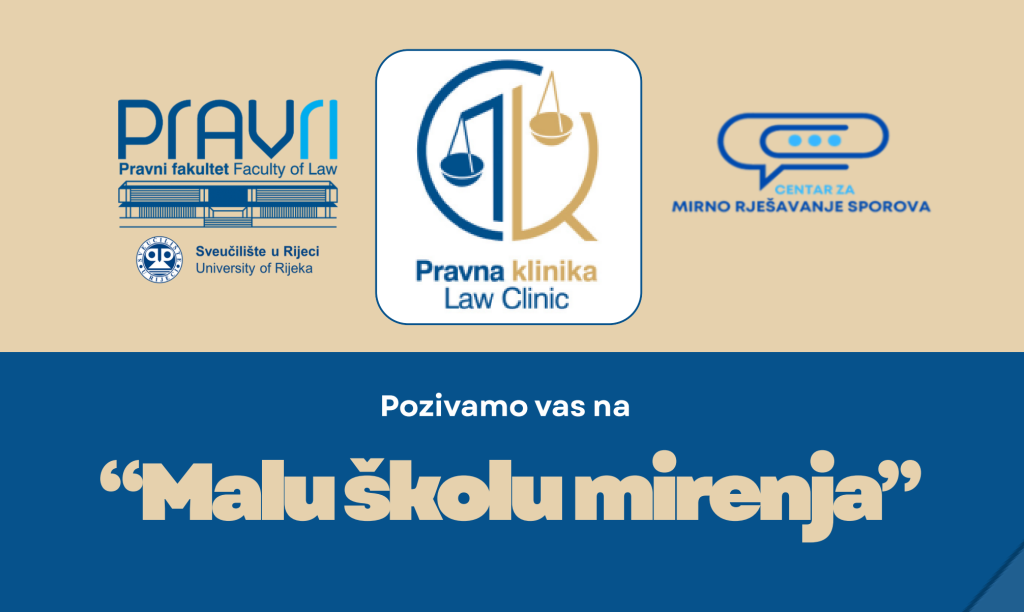 Klinika Pravnog fakulteta Sveučilišta u Rijeci i Centar za mirno rješavanje sporova pozivaju zainteresiranu javnost i studente na „Malu školu mirenja“ koja će se održati 06. i 07. studenoga 2025., u 14:00 sati, na Pravnom fakultetu Sveučilišta u Rijeci.